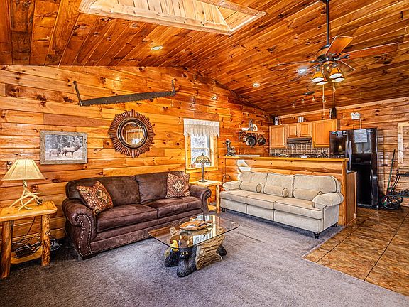 Discover the uniqueness and seclusion of this mountain Chalet, perched near the summit of Baines Mountain Estates. This stunning mountainside retreat offers breathtaking views and boasts a fantastic rental history. The chalet features an all-wood interior with cathedral ceilings and skylights upstairs, creating a warm and inviting atmosphere. The main(basement) level includes an en suite bedroom with built-in shelving, a gas fireplace, and a full bath with a walk-in shower and washer/dryer on this level. The upper level offers a fully equipped kitchen, a large living room, and another full bath. Large deck off of the living room. Outdoor living is a highlight at this home, with lots of deck space, a covered patio with a hot tub, an outdoor kitchen with a bar, gas grill and burner, and a sun deck with loungers. Amazing outdoor shower. Cozy firepit area also. Enjoy sunrise-to-sunset views, roast marshmallows under the starry sky, or relax in the soothing hot tub. This home promises a relaxing, romantic, and therapeutic mountain getaway. Light a spark in your spirit and take in the stunning mountain views at this exceptional retreat! End of the road privacy.