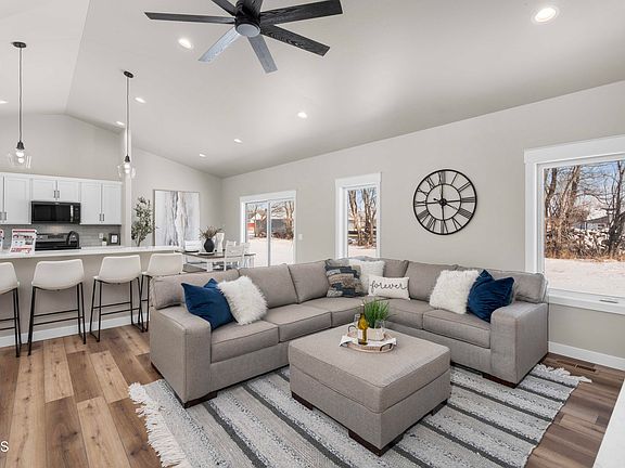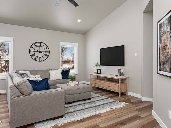 Check out this new construction patio home built by Rusch Homes. This home is located in the Clear Sky Subdivision, just minutes from Bismarck. This one-level home features 3 bedrooms and 2 bathrooms. The kitchen includes quartz countertops, white cabinets, soft-close drawers, black steel appliances and pantry. The living room, kitchen and dining room features 12'+ vaulted ceiling, providing a spacious atmosphere with plenty of natural light. The primary suite includes bathroom with dual sinks, custom-tile shower and walk-in closet. The over-sized 3-stall garage is over 1,000 sq ft. It has hot/cold water, floor drain and has gas hookups for a gas heater. There is a beautiful white barn door that leads to the mudroom/laundry room, with a a bench, hooks along with a coat closet. Hero's Park is just located down the street. Call today to schedule a showing.