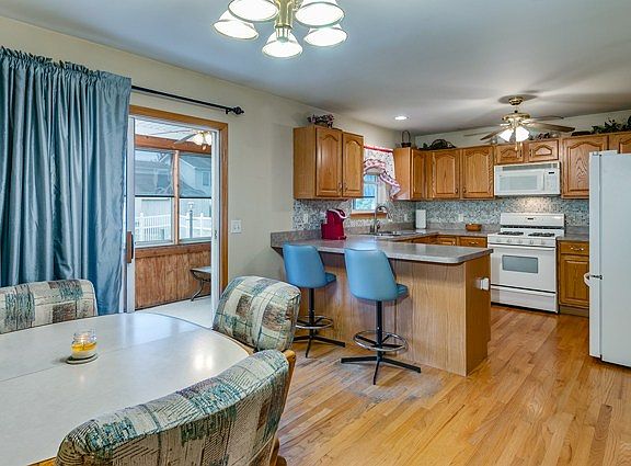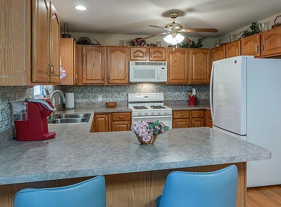 Well kept one owner ranch home. Great floor plan that can meet so many peoples needs and wants. Hardwood floors accent the open floor plan with cathedral ceilings, warmed by a wood burning fireplace. Kitchen features lots of counter space and well lit interior overlooking the 3 season room, and the nice fenced back yard. 3 good sized bedrooms, with a master suite also overlooking the back yard. Convenient 1 st floor laundry. Finished basement with large family room, wet bar, bedroom/office. Plus ample storage. Updated furnace. This home has been well cared inside and out. Great price for this home!