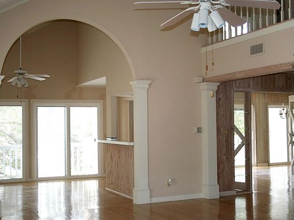 Mt. Gilead, Murrells Inlet. This wonderfully unique, waterfront 5BR/4BA home greets you with 2 large custom mosaics on lighted front steps, wrought iron double front doors, inverted design with main living areas on the first floor featuring Oak floors, large, open Great Room with wood-burning fireplace with custom decorative mantel & hearth and vaulted ceiling, formal dining room with Pecky Cypress wall coverings, built-in wet bar and wine rack, spacious Kitchen with skylights, granite counter tops, double ovens, work island, pantry, desk, breakfast nook. Family Room has built-in 60'' rear projection TV cabinet (on casters, components hidden behind unit), Artist studio with sink, ample counter space/cabinets, walk-in storage room. Huge wrap-around deck overlooking the water with multiple accesses through dining room and kitchen. Second floor has new carpet throughout a bedroom and one Master Suite with wood burning fireplace, sitting room, sunken onyx Jacuzzi tub and full bathroom.