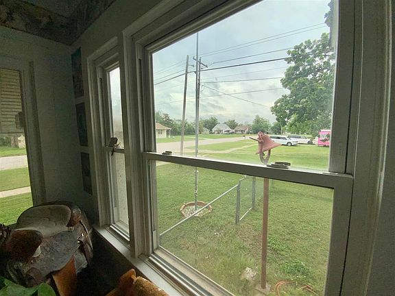 A Perry Charmer..Circa 1927! Really a relic of a glorious past. Modern systems don't detract from the original charm. Most light fixtures are original. Hardwood flooring (under carpet). Spacious living area with open formal dining. Enclosed sunroom/porch at entrance; would be great for Breakfast & coffee. Bedroom 1 with French doors would make an awesome office. Shared bath with walk in shower. Main bedroom with half bath. Nooks & crannies abound for all your treasured collectibles. Kitchenette with white painted cabinets; all appliances remain. Outside you will find detached garage; plus laundry facility with separate water heater & heat. Fenced backyard. Partial basement. Portico in driveway. Updates include: windows; roof (2020), siding, HVAC (5 years old). It's your chance to set the clock back to a far gentler period for only $92,500.00.