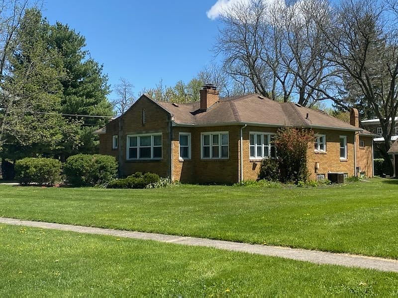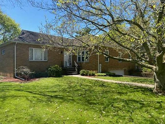 This unique all brick home is situated on a corner and sits on 2 lots in the North end of Oregon. It is close to schools and neighborhood parks. There are hardwood floors in the living room, dining room, and under the carpeting in two of the bedrooms. The kitchen includes custom walnut cabinets and a breakfast nook. All appliances stay except a refrigerator and are as is. The sun room contains custom built-in book cases and there are custom cabinets in the main floor bathroom. The family room on the lower level has a kitchenette with custom cabinets, eat-in bar complete with an under bar refrigerator that stays and is as is. There are three wood burning fireplaces. Two car attached garage and an additional one car detached garage.