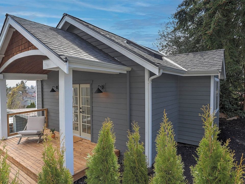 Newly renovated and feels like a new construction! This absolutely adorable cottage style house feels anything but small w/this exceptional floorplan. Featuring a main level w/an open entry, vaulted ceilings & skylights bring an abundance of natural light that give this home a happy ambiance. Gorgeous kitchen w/SS appliances, quartz counters & hardware that shines; don't miss views from the window. Additional features include 2 bedrooms w/sizable closets, full bath w/stylish tilework, french doors & tons of character throughout. Welcoming covered front deck & yard space waiting for your personal touch. Nestled in the heart of Phinney Ridge & blocks to PCC, Green Lake, Woodland Park Zoo, restaurants & library. New roof, new appliances & more