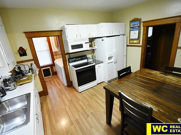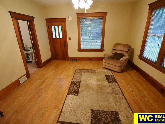 Ranch home features original woodwork, pergo flooring, 3 bedrooms and 1 bath. A finishable full basement includes a separate outside entrance. Outside features a large covered front porch, shaded wood deck, fenced back yard and a 1 car garage with an attached car port and alley access. New windows in 2015 and roof in 2014. Main floor laundry and all appliances stay. Great location just blocks from school and city park/pool.