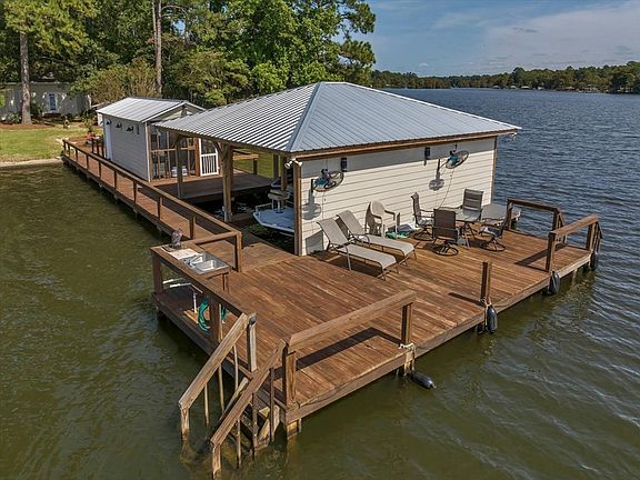 Price improvement!! 515 N Cedar Creek is your gateway to lakefront bliss! This SPECTACULAR and absolutely unique Lake Blackshear home boasts 1.37 acres of private gated property that has water on THREE sides! Enjoy the expansive outdoor oasis with breathtaking views and direct access to the lake, ideal for fishing, boating, and water recreation. The open-concept design of this home fills the living space with natural light, complemented by a cozy fireplace and beautiful hardwood floors complete with three bedrooms and a large bunk room with a lounge area. The luxurious primary bedroom has amazing lake views, a double sided gas fireplace, walk in closets and a spa-like bathroom, complete with heated tile floors. The kitchen and dining area is large and open making it perfect for entertaining. Enjoy the screened-in back porch with stunning views, or head out to the dock to enjoy even more lakefront paradise! In addition to the double boathouse, there is a screened in grilling/cooking area on the dock complete with a TV and sliding screen doors to deliver appetizers or cold drinks to your guests. With so many features, this absolutely extraordinary property is perfect for a primary home OR a vacation home. Call to schedule your private showing today!
