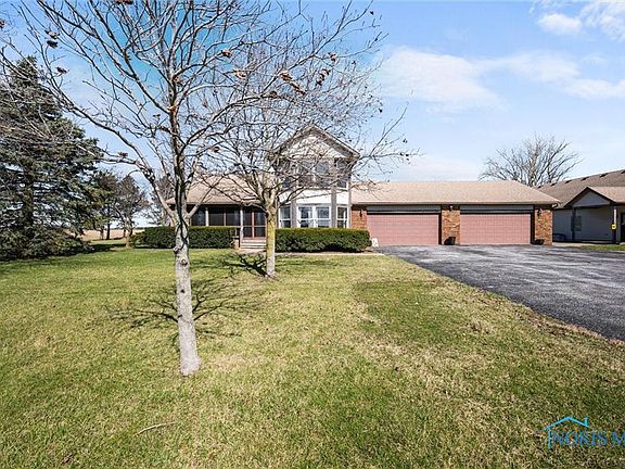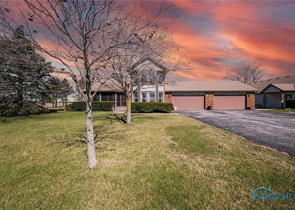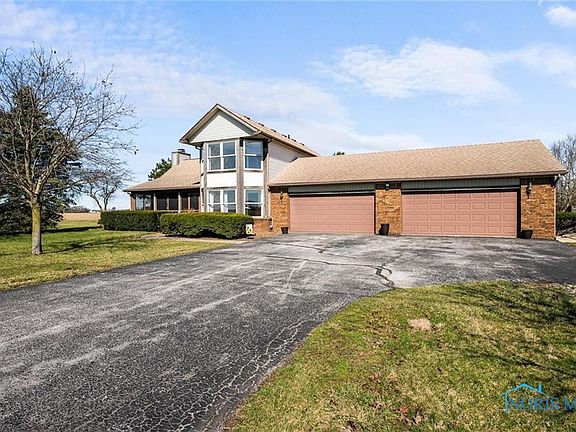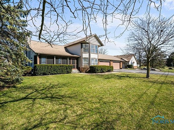 An opportunity you won't want to miss on over an acre! Move-in ready with updated kitchen, brand new GE appliances, two-story stone fireplace, vaulted ceilings. 1st floor primary bedroom with private bath attached. Enjoy the sunsets from the screened in porch, deck, or 3 seasons room from 6 person hot tub! Genoa schools. Fenced in yard. Impressive corner lot utilized to the max. 4 car attached garage, finished detached garage with 3 bays, perfect for small businesses, car collectors, and those who have all the toys! Opportunities like this don't come up often, schedule your private tour today!
