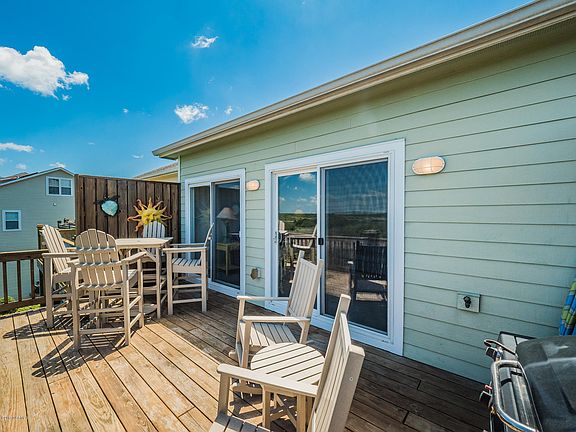 The perfect front row seat to enjoy glorious sunsets over the Intracoastal. Easy walking distance to the beach, shops, restaurants and all the attractions that Surf City has to offer. Enjoy the marsh wildlife and beautiful passing yachts from 600 square feet of waterfront decks. Spacious garage with lots of storage room for your beach toys and a tandem carport as well. Reverse floor plan with an open, airy greatroom featuring a cathedral ceiling and corner fireplace. Stainless appliances in the well appointed kitchen. All three spacious bedrooms are en suite. This soundside charmer has been meticulously maintained, freshly painted, has new carpet throughout and is being sold furnished and ready for your immediate enjoyment.