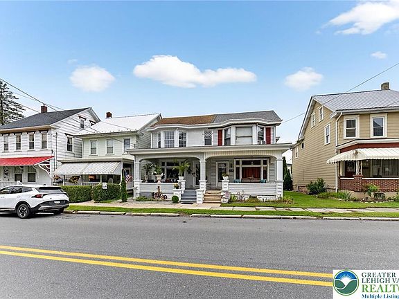 Nestled in the heart of beautiful Jim Thorpe Borough—rich in history and vibrant landmarks—this 3-bedroom, 2-bath twin home blends timeless character with thoughtful updates. Stylishly maintained, the home showcases unique touches throughout, from elegant tiled bathrooms to custom teakwood molding. The main level features convenient first-floor laundry, a modern full bathroom, and a versatile bonus room that could serve as a 4th bedroom, office, or den. Upstairs, you’ll find the spacious primary bedroom, two additional bedrooms, and even a second kitchen area—perfect for added flexibility. A finished attic on the 3rd floor provides extra living or storage space, while the finished basement offers endless possibilities, including a theater room, abundant storage, and plumbing potential for an additional bathroom. This home is a rare find in a sought-after location—close to shops, restaurants, and all that historic Jim Thorpe has to offer.