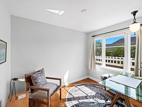 AVAILABLE for Winter and Summer 2026. This quintessential meets coastal modern home comes fully Air-Conditioned and turnkey Furnished with 3 bedrooms + 1 Den + 1 Office starting June 1st. This is an exclusive opportunity to rent on one of the most desirable hometown streets of Laguna Beach, right in the heart of our community, with a real taste for our local vibe and yet a short walk to the best beaches, restaurants and shops. Great curbside appeal, and meticulously landscaped front entry accented with long driveway for easy two car tandem parking and ocean views. Walk through a priceless home that showcases pride of ownership and is completely furnished and ready for your next Laguna adventure. This lovely home offers light and bright vaulted ceilings with a coffered living room fireplace, real hardwood floors throughout, gas appliances, and air conditioning. Spacious galley kitchen with farmhouse sink and side access to rear sun patio that is privately enclosed with outside hot and cold shower to wash off beach sand. Third bedroom is detached from the main house with an adjoining room with a closet and space for an office. Two bedrooms in the main house includes a second full bath with bathtub and spacious ensuite main bedroom. Stackable washer and dryer for laundry in closet.