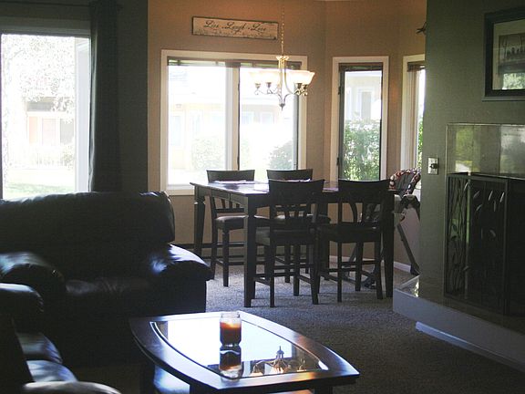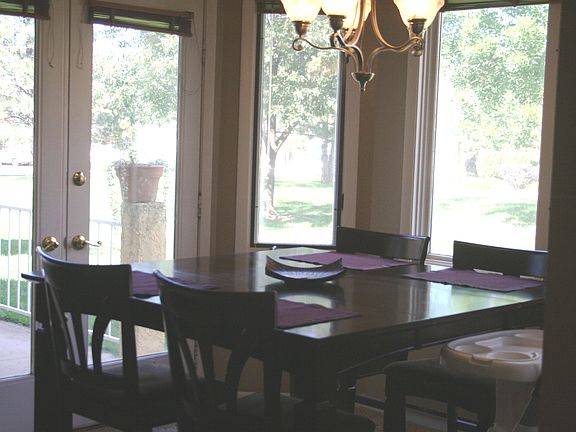 These are hardly ever for sale and it's an end unit ground floor ranch to boot! Excellent location! 2 bed 2 full bath and a huge 12 x 39 foot tandem garage. Gorgeous Pikes Peak View from dining room table and patio. Looks out onto green area full of deer and wildlife. Move in condition. Updated master bath and second bath. Custom blinds, brand new kwikset locksets and knobs, freshly tiled second bathtub, wood burning fireplace, huge master with large walk-in closet. Light and bright and shows great. washer and dryer included. most furnishings for sale.