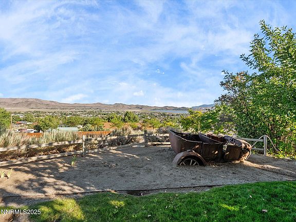 Enjoy the best of both worlds with this semi-rural retreat on over an acre, offering sweeping views of the mountains, valley, and nearby desert lake. Just minutes from town conveniences, this peaceful property provides room to breathe and space to unwind. The comfortable floorplan features a welcoming family room that opens to the kitchen, while the living room showcases breathtaking scenery through a large picture window. Two generously sized bedrooms offer plenty of comfort, and recent upgrades—including a newer roof, well pressure tank, water heater, and furnace—provide peace of mind. The three-car garage is perfect for vehicles, toys, or a workshop, with additional RV parking. You'll love relaxing on the front porch, taking in the views and watching the local wildlife. Mature fruit trees—including apple, pear, peach, Bing cherry, and apricot—add charm and utility to this inviting property. Easy access to hiking/biking/ATV trails and just a short drive to year-round recreation at Lake Tahoe and Pyramid Lake.
