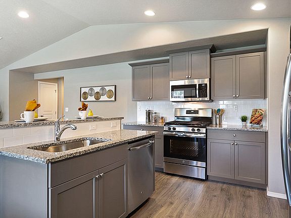 Beautiful new home in Central Point East! This 2020 built home is located in one of Central Point's most sought after neighborhoods and is scheduled for completion in October. Built by Simplicity Homes, you will find the highest quality in design and craftsmanship. The vaulted ceiling's and large custom windows offer plenty of natural light and a spacious feel. The amenities include granite counter tops, hardwood laminate flooring and high-quality appliances. The stylish design and appealing color palette are the highlight of this beautiful new construction home! With three bedrooms and 2 1/2 baths, the floor plan is designed for comfortable living that maximizes the square footage. The well-thought-out plan includes upstairs laundry near the bedrooms for convenience. Landscaping and fencing are included. HOA dues $70/mo.