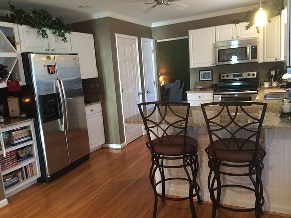 Spacious home overlooks tranquil park area, yet conveniently located close to schools, library and town. Recent home updates include new kitchen appliances, granite counter tops, new master bath with double sinks and over sized tile shower w/double shower heads, new wrought iron & wood stair rails, new Berber carpet upstairs, fresh paint throughout, new ceiling fans and light fixtures, a fireplace with gas lots, new roof, 2 new HVAC units, landscaping and addition of 12x19 storage building wit electricity. The unique floor plan allows versatility in use. The openness of the living area and the kitchen/dining room and the upstairs den/family room all offer many possibilities. Main floor has beautiful hardwood floors. The 12x12 screened porch with vaulted ceiling opens to 14x30 deck for great outdoor living. This home is move in ready.