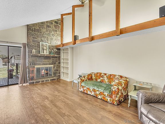 Check out this great listing in the heart of Sand Springs. Great neighborhood, uniquely designed living room w/ vaulted ceilings, towering fireplace. New carpet/flooring in 2023 as well as roof replaced in July of 2020. This home has an above ground pool w/ nice deck just in time for summer and entertaining guest.