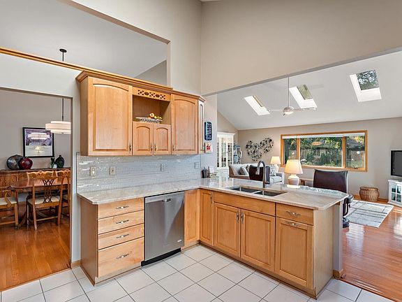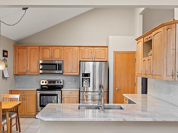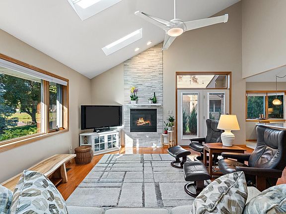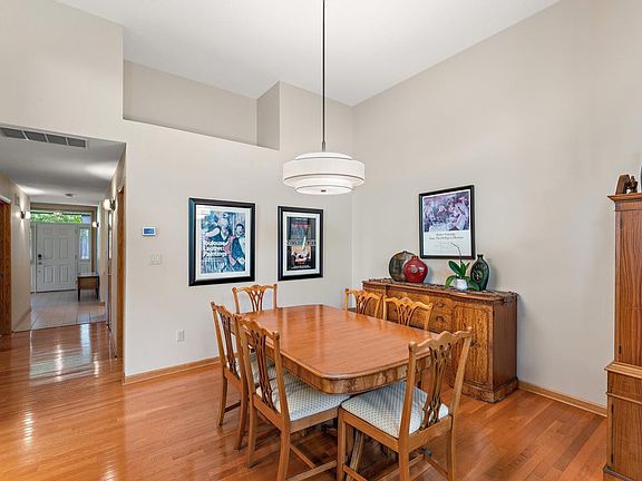 UPDATED open ranch floorplan in The Greens of Scherwood has an abundance of natural light with vaulted ceilings and skylights. Large eat-in kitchen features quartzite countertops, glass tile backsplash, maple cabinets, pantry, and SS appliances. Beautiful hardwood floors run through the dining room and spacious living room with updated fireplace. Primary bedroom with dual walk-in closets, ensuite with double vanity, jetted tub and walk-in shower. Front living room with nook can easily convert to 3rd bedroom or office. Extra deep two car garage with a walk-up staircase to floored attic adds to the almost 2000 sq ft of living space. Backyard and extended patio have pond views and lush landscaping for added privacy. Walking distance to Community Center, walking paths, parks, bike trail and golf course. HOA covers roof, siding, exterior painting, irrigation/pond maintenance, tree/shrub trimming, gutter cleaning, lawn maintenance, snow removal and more. OFFERING HOME WARRANTY!