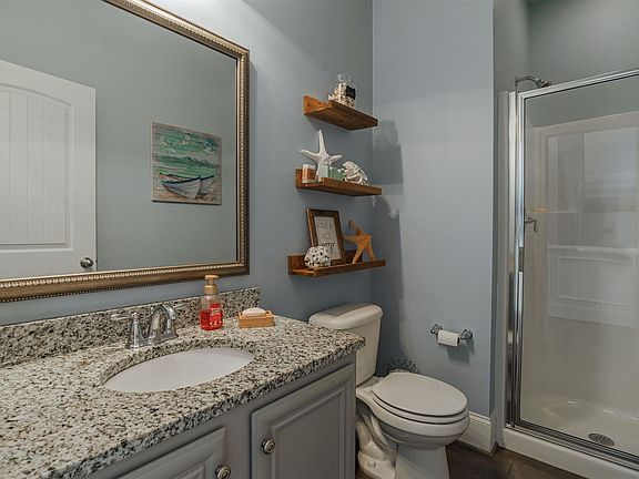 This "Lakefront Community" has a lot to offer! Bring you kayak, canoe or leisure boat & "Get Out There"! Amenities include: Lake Access to Lake Murray, Boat Ramp, 2 Day Docks, "Sandy" Sunset Beach, Fire-Pit, Golf Cart Parking, 2 Cabanas w/ Picnic Tables, Boardwalk to sit & watch the Sunset, Kayak Racks & Boat Storage too. This 4 or 5 Bedroom home w/ 3 Full Baths is "Ready To Move Right In". All "Wide-Plank" Hardwood flooring on the first floor & a Gas Fireplace for those chilly nights. Large Open Floor Plan to Entertain Family & Friends.. Large open Gourmet Kitchen w/ Granite Counter Tops, Stainless-Steel Appliances, (Gas Line in place), Tile Backsplash, Staggered Gray Cabinet, large island , Docking Station & speakers too. One Bedroom or Office w/ French Doors downstairs & a Full Bath. Upstairs are 2 more nice size Bedrooms and a Bonus Area at Top of the stairs for a Play Area or Media Area. Master Suite has Tray Ceilings, Walk-In closet (Hers) & other closet (His). Master Bath w/ Granite Double Vanities, Garden Tub & Separate Shower. Home features: Tankless Water Heater, Low-E Windows, & R-50 insulation. One of the largest fenced in backyards in the subdivision. Award Winning Lexington One Schools.