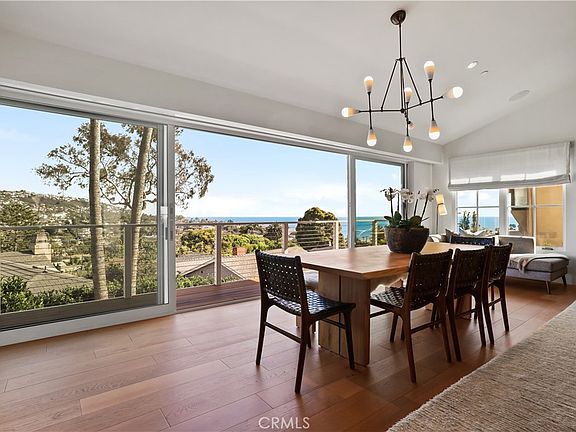 Welcome to 515 Poplar, the epitome of modern luxury nestled in the heart of Laguna Beach with abundant ocean, canyon and city views from both levels of the home. This turn-key, beautifully remodeled residence designed by DISC Interiors, represents an unparalleled opportunity to enjoy the California lifestyle. Upon entering the home, guests are greeted by the extraordinary views from the great room. The spacious layout with vaulted ceiling allows for cooking, dining and entertaining all while taking in the views. The kitchen is a haven for culinary enthusiasts where custom rift cut white oak cabinets encase the Sub-Zero refrigerator and showcase the Calacatta Borghini extra gold marble. Wolf appliances, including a 6-burner range and a convection/steam oven, make anyone a chef. The custom blackened steel hood adds a modern touch and mirrors the floor to ceiling cerused rift cut oak fireplace surround feature. Retreat to the main bedroom, a sanctuary of luxury and comfort where you'll wake up to the sun rising over the mountains while the sound of the ocean will lull you to sleep at night. Storage abounds in the cedar-lined walk-in closet while blackout curtains and sheers offer privacy and a restful atmosphere when needed. The amenities continue into the main bath where a large steam shower with rain shower, heated floors and heated towel bar await. A stunning Ipe deck connects the main bedroom and great room and features more stunning ocean, canyon and city views. The lower-level great room features a travertine gas fireplace and Sub-Zero wine fridge/wet bar, perfect for entertaining or whatever you may need. Three spacious bedrooms offer versatile layouts and abundant natural light, with more views from the downstairs suite. Noteworthy features include: Kolbe windows and Western sliders (all with screens), all baths have heated floors, Ann Sacks tile and marble throughout, wide plank oak flooring, tankless water heater, A/C, main floor laundry, security system and Sonos surround sound housed in discreet AV room, extra storage, and a 2-car garage with Tesla Charger. Located in the desirable North Laguna tree streets, you'll have easy access to enjoy the sun and surf at nearby beaches, explore the vibrant art scene, incredible shopping and dining options, and renowned outdoor hiking and biking. Experience the pinnacle of luxury and coastal living at 515 Poplar, where meticulous design is surrounded by the beauty and lifestyle of Laguna Beach.