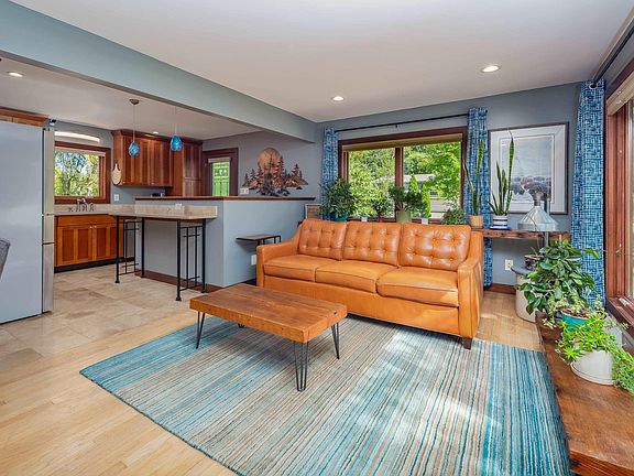 Exuding pride of ownership, this charming two-bedroom residence offers a serene private retreat ambiance. Situated on over 3/4 of an acre of meticulously maintained wooded land, it features a one-car garage with additional storage and workspace. The expansive deck and newly constructed screened-in patio provide an ideal setting to appreciate the surroundings. Interior highlights include stunning wood floors, a modernized kitchen equipped with stainless steel appliances, an updated bathroom boasting a tile shower and bath, two generously sized bedrooms, and a spacious living room flowing seamlessly into the kitchen. The walk-out basement offers ample storage and potential for conversion into additional living space or a third bedroom complete this exceptional property.