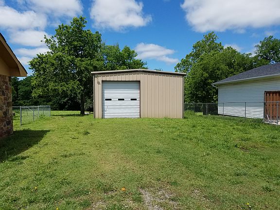 It is a 4 bedroom, 2 full bath rock home on a 1 acre lot. There is a full size metal building/garage that is insulated. The home is newly remodeled with all new appliances. The attached garage has been converted to a master bedroom with a bathroom and a walk-in closet. There is a storm shelter on the south end of the house. The remodel updated, heat and air, plumbing and electeical. Owner financing available to qualified but with a 10% down payment.