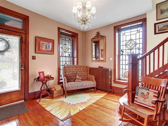 Beautifully restored home in lovely condition-Relax in the swing on your front porch-Amer Chestnut trim, wood floors, built-in bookcase & desk, pocket doors, stained glass & 9' ceilings-Remodeled kitchen & bath w/heated tile floors-Kit w/orig cabs refinished, island & pellet stove-New Jack & Jill bath betw master BR & 2nd BR-200 amp elec & totally rewired-Huge deck & pergola plus large fenced yard-Plenty of off-street parking on 150' driveway!
