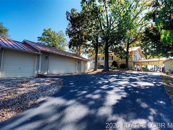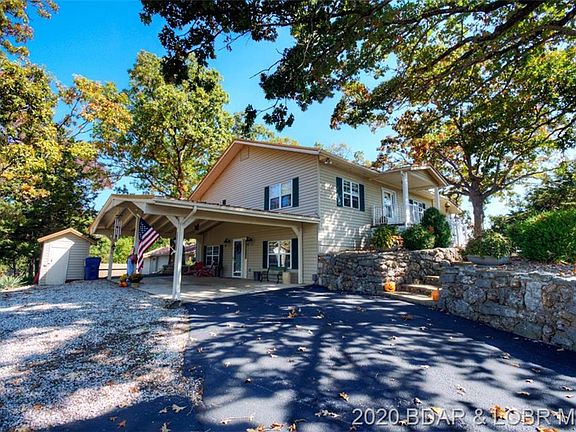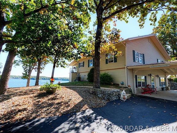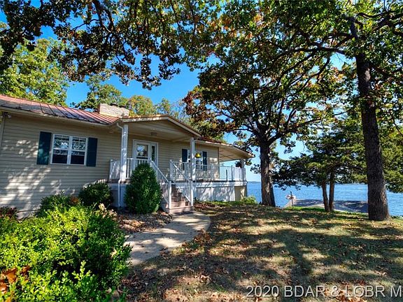 Attractive 4 bedroom, 2 bath lakefront home with Super view of lake! Light and bright with open floor plan. One level living. This comfortable home offers stainless appliances, granite kitchen countertops, furnace and roof upgrades, spacious 4 seasons room with split unit HVAC and attractive epoxy concrete flooring. Large family room for entertaining plus 2 gas log fireplaces. Enjoy the upper decking with AZEK Paving Tiles & unique handrailing that adds to the character of this home. Large rooms add to the roomy feeling throughout this home. Spacious lot with privacy. Heavy duty dock built by Ozark Barge. The outside is ready for friends & family to enjoy! Includes 3 car detached garage PLUS 2 car attached carport! City sewer & private well. Plenty of parking & blacktop to door. Come take a look!