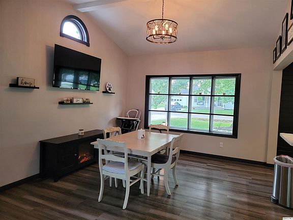Renovation in 2018 includes new siding, roof, & windows along with interior remodeling which consists of a newer breaker box with electrical upgrades, tankless water heater, painting, & flooring. Open floor plan - great room/dining area/kitchen w/island. Large garage with a workshop area, full bath with tub/shower combo, 1/2 bath in laundry room has a stackable washer/dryer, large enclosed back yard, open front porch, concrete patio area
