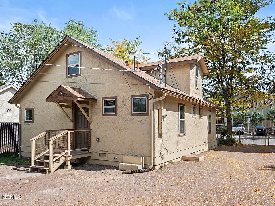 $4000+ mo income potential. NO HOA! Perfect for Student housing or AirBNB. Priced for QUICK SALE over $170,000 off original price! Nothing else like it...HEART of DOWNTOWN, at NAU, walk to EVERYTHING-BEST SHOPS, BEST RESTAURANTS in Flagstaff! 1950s adorable Cottage from the outside & completely remodeled (to the studs) on the inside. It gets better...Zoned High Density Residential so you can permit to build ANOTHER home, apartment or duplex on the back of this huge lot. The possibilities for the lot or separate garage are endless, even more so for the existing home. Entire inside is completely BRAND NEW. Home has 2 large bedrooms w/ 3 separate, tiled walk-in shower bathrooms downstairs & 3 bedrooms, plus an extra small living room upstairs. OLD meets MODERN NEW + Huge Potential = PERFECT!