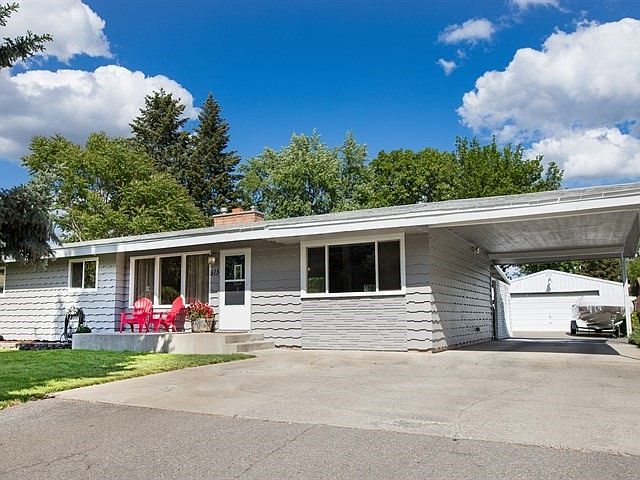 This charming 4 bedroom, 2 bathroom Spokane Valley Rancher is located in the Central Valley School District. New exterior and interior paint, new carpet, gas fireplace on the main floor, masonry fireplace in the lower level family room & master bathroom. Covered carport and 2 car detached garage. Large fenced backyard with sprinkler system and 2 garden spaces.