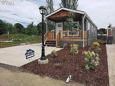 2019 Manufactured Home, The Trintdad by Fleetwood, Unit#8 in mobile home park, Hope Village! 2 BD, 1 BA, tub/shower, great room floor plan, knotty alder cabinetry, welcoming covered front porch, forced air heat, inside laundry area, roomy on-site storage shed, 2 car concrete driveway. Range & dishwasher included. Best of all, your front landscaping is included & maintained within the park rent of $500 p/m. More new homes to be added in the near future. Front entrance a community park.
