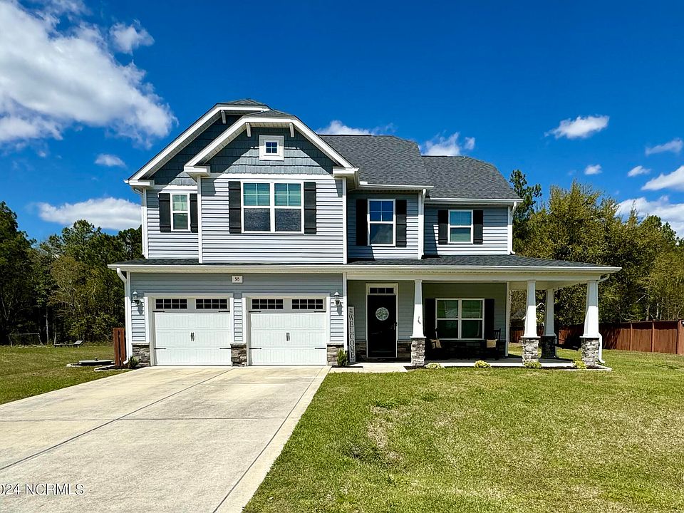 Welcome to the highly desirable neighborhood of The Preserve at Tidewater, which is perfectly situated between Jacksonville and Wilmington. Upon entering this beautiful 4 bedroom, 2.5 bathroom home, you will notice the engineered hardwood and tile flooring throughout the downstairs, which compliments the detailed crown moulding. The formal dining room showcases a stunning coffered ceiling and wainscoting that leads to the butler's pantry and into the kitchen. The kitchen offers stainless steel appliances, granite countertops, recessed lighting along with ample counter and cabinet space. Off of the kitchen you have a breakfast area as well as the living area which is complete with a gas fireplace and ample natural lighting. Finishing the first level is a half bathroom and drop zone located near the door of the two car garage. Upstairs you will find all 4 generously sized bedrooms along with 2 full bathrooms and laundry room. The primary bedroom offers a stunning tray ceiling and your first walk-in closet. The primary bedroom provides an ensuite, with a separate shower, tub and your second walk-in closet. Whether enjoying the extended covered front patio, covered back patio or the fit pit conveniently located on the 0.85 acre lot, you will be able to find the perfect spot to end your day. The Preserve at Tidewater also offers a community swimming pool (which is only 0.3 miles away) as well as a beautifully maintained walking trail that leads to views of Alligator Bay.  So what are you waiting for, schedule your showing today before this meticulously cared for home gets taken off the market.
