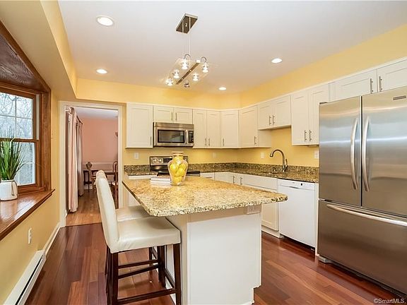 If youre looking for a spacious home that will comfortably meet your needs and then some, look no further! This solid built home has hardwood floors throughout and offers many extras such as a large 3-season porch, in-ground gunite pool, third floor walk-up attic and whole house, on-demand generator. The Kitchen has been recently renovated and boasts granite countertops with slow-close cabinetry and stainless steel appliances. All bathrooms have been tastefully updated. Sure to be your favorite room to relax in after a work day is the beautiful Great room with its cedar vaulted ceilings and massive stone wood-burning fireplace. Access the outdoors from either the Great room or Kitchen and extend the entertainment to the comfort of your expansive screened porch which opens to the backyard deck and finally the in-ground pool. The home sits on a corner lot at the top of a cul-de-sac neighborhood. Not just a desirable location but also a very convenient one just minutes from both the new high school and the historic town Green.