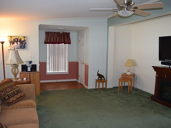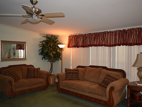 Public:Move right into this Ponderosa Model featuring a large living room, formal dining room, eat-in kitchen with lots of cabinet and counter space, plus 2 bedrooms and 2 full baths. The master bath has a soaking tub and a stall shower. This home is in excellent condition. All window treatments are included. Enjoy the outdoors relaxing on your front porch. A shed with electric provides additional storage. Never clear snow from your car again with the attached carport. The lawn will stay green with the sprinkler system and the water is included in your lot fee. The monthly fee also includes: Use of the Swimming Pool and Clubhouse, Common Area Maintenance, Trash Removal, Snow Removal and Public Sewer.