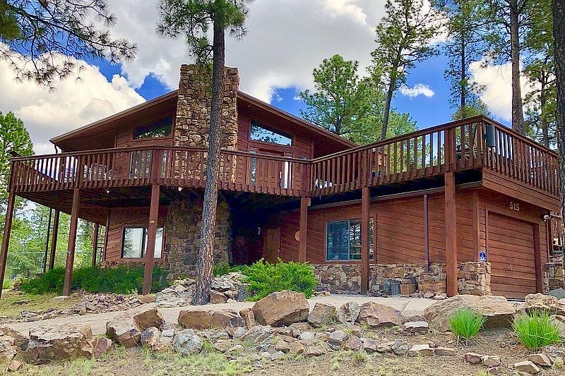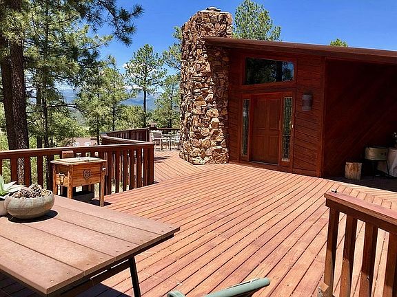 Deck & View with Mountain Home: Fantastic Sierra Blanca Views from Huge Decks. Fabulous Location, large lot in White Mountain, 4/4, with 2 Rock FP, master with jet tub & shower.