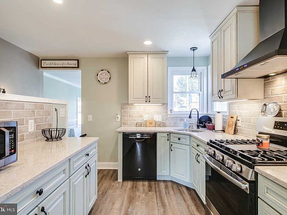 3 Bedroom, 2 Bath Rancher in Crestwood with Extensive Updates! Walk into the Bright Living Room/Dining Room Combo with Large Bay Window. The Kitchen features Updated Appliances, Quartz Counters, Gas Cooking ( Electric Hookup Available if Preferred) and Vent Hood. The Bedroom Area features 3 Spacious Bedrooms with Hardwood Floors and Newly Renovated Full Bath with Tile Shower and Granite Counter. An Addition in the Back of the Home is Used as a Dining Area with Access to Large, Fully Fenced Rear Yard with two sheds and fire pit. The Finished Lower Level includes Custom Bar, Luxury Vinyl Plank Floors, Full Bath with Tile Floor and Concrete Counter plus Laundry Room. The Rear Yard has Two sheds and Fire Pit. The Many Updates to This Home include New HVAC System & Kitchen Appliances, Replaced Front Door, Windows & Trim, Remodeled Kitchen, Sunroom, Bathrooms & Basement, Added Bar, Storage, Firepit Patio, Two Sheds and Landscaped Front Yard.