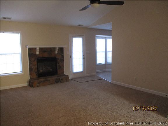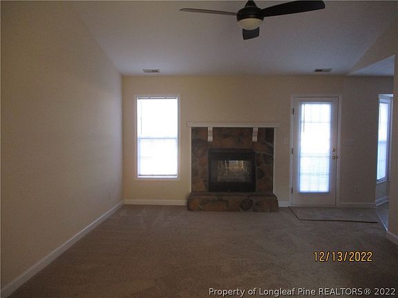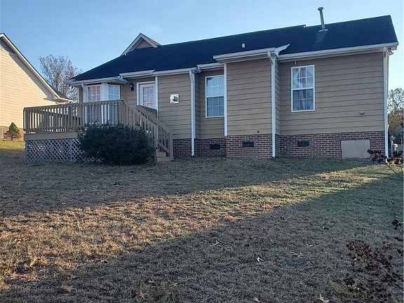 Very nice 3 bedrooms + bonus room with closet (4th bedroom) 2 full bath, eat-in kitchen w/range, refrigerator, dishwasher and pantry, Greatroom with gas log fireplace, new carpet, freshly painted interior, Relax as you enjoy the front porch or the deck on rear, oversized double garage with window a/c. Ready for move-in. metal storage building is a gift but does offer that little extra storage.