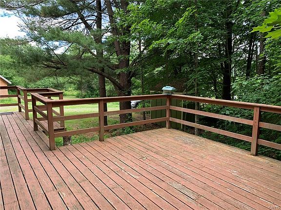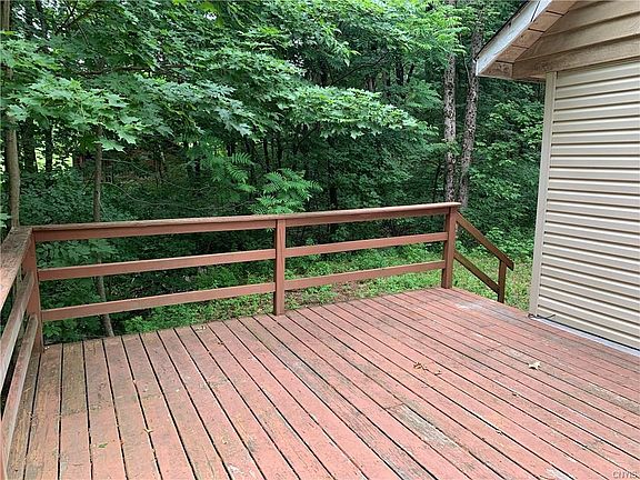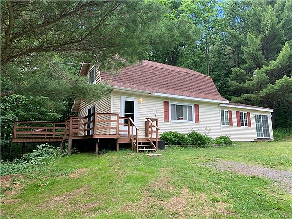 Welcome to this cozy and private home located on over 11 acres! This 3 bedroom home has a very nice open floor plan with dining and living room combination and galley kitchen. Nice full bath and master bedroom on the 1st floor. Second floor includes two generously sized additional bedrooms. You'll love the large deck from the sliding glass doors off the living room. Serene streams that runs close to the deck will make you feel like you're in your own private retreat home. There are three outbuildings, a large two car garage, a one bay barn, and a smaller tool shed next to the home. This home is only minutes from Cincinnatus, and will serve as the perfect year-round home, weekend getaway, or hunting cabin.