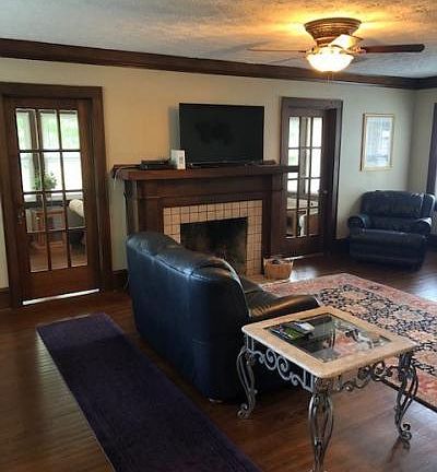 Stately Colonial located on a treelined street. Leaded glass front door that opens into the vestibule with closet. Large living room with crown molding and fireplace. Glass doors open into the solarium flooded with natural light and fireplace with gas heater. Formal dining room. Updated kitchen with granite countertops, stainless steel appliances and ceramic tile floor. Eating area with additional counterspace, cabinets and double windows overlooking the side yard. Half bath on the first floor. Attached 2 car garage. Upstairs are 3 generous sized bedrooms. Updated main bathroom with pedestal sink. Finished basement with large rec room, bonus room with double closets and full bathroom with bathtub with ceramic tile and glass shower doors. Large, fenced back and side yards. Call today to schedule an appointment to see this well-maintained home loaded with character and old-world charm.