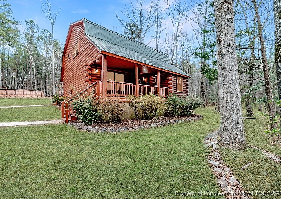 This secluded log cabin at the end of a dead-end road offers privacy, space, and functionality. Features include a metal roof, built-in kitchen appliances, large covered front and back porches, and an above-ground pool. Property also includes a detached two-car garage with RV carport, storage building, and partially fenced yard. Welcome home to quiet country living with room for vehicles, animals and whatever your heart desires.