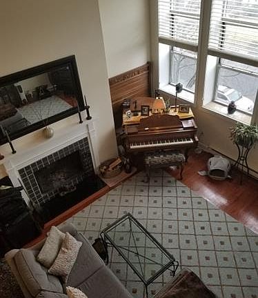 Spectacular two level third floor unit wextra high ceilings. Two bedrooms and bath on the first level + one bedroom and bath on the second level. Extra high windows welcoming in cheerful bright sunshine. Walk into the unit that is reminiscent of a New York City loft with extra large windows and high ceilings.. The 2 story expanse is open and airy. The kitchen features SS appliances. The brick elevator building features air-conditioned hallways. Stackable washer dryer is in the apartment for your convenience. Hardwood floors through-out, Living Room Dining Room combo with three air-conditioners included in the apartment. There is a heated garage with an assigned parking space. Ideal location two blocks from award winning downtown Westfield and train. Easy access to shopping, parks, schools, restaurants and cafes.