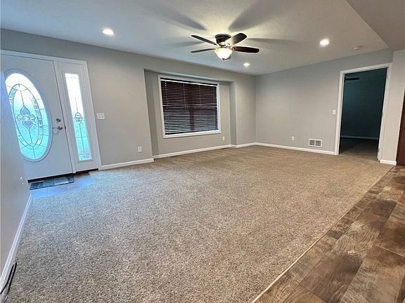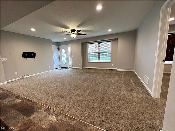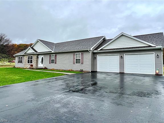 A rare find in Minerva Village with this 2018 built ranch offering an open floor plan. Beautiful wood laminate floors throughout most, updated carpet and neutral decor'. Foyer entry with closet and spacious living room. One floor living at its finest with quality finishes, extra lighting and storage. Large first floor laundry with built-ins and utility closets. You will love the oversized kitchen with multi level center island/breakfast bar, stainless steel appliances, custom cabinets, walk-in closet pantry with extra countertop and more cabinets! The dining area is open to the kitchen and family room with a wood burning stone fireplace and decorative mantel. The Master suite offers a gorgeous full bath with double sinks, extra storage and a beautiful 6x4 walk-in tiled shower! Attached 24x24 garage with built in cabinets, paved driveway and access door to the backyard with patio. City utilities, C/A, no HOA and situated on a quiet street. Won't last!