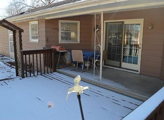 great location in this comfortable 3 BR 2 bath home on corner lot that is a couple blocks from Middle and High School. Close to walking trail and Kanza walking park. French door opens to covered patio and deck with fenced in back yard, Storage shed
