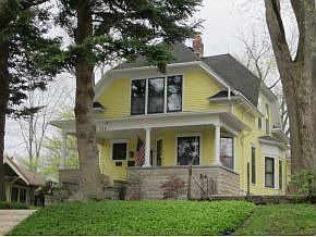 Own & Enjoy A Part of Bloomington History! The Mickey Burke House, Circa 1906, Has Been Lovingly Maintained & Is Ready For New Owners To Continue The Tradition! This Marvelous Home Features Details To Love Such As All Wood Flooring, Massive Solid Pocket Doors, 9 Ft Ceilings, Original Deep Base Trim, Original Fireplace Surround, And As A Nod To Modernity, Boasts A Wonderful Remodeled Kitchen And Sun Room Across The Back! The Covered Front Porch Leads To Foyer, With Parlor (Living Room) To The Right Through Original Pocket Door. Find A Copper Ceiling, Floor-To-Ceiling Bookcases On Each Side of Door To Adjacent Family Room, And Bay With 4 Windows. Family Room Has Original Copper Fireplace Screen, 3 Windows, & 3X 5 Storage Closet. Note Another Gorgeous Pocket Door To The Delightful Dining Room With Two 7 Ft High Windows, & Door To Cellar. Go Through The Swinging Paneled Door To The Kitchen Renovated In 2007, And The Light-Filled Sun Room Wonderful Features Here: Cork Flooring; Slate Counter Tops; Stainless Steel Appliances; Merlot Stained Cabinets; Pantry; Adjacent Full Bath With Stamp- Style Ceiling; 11 Ft Long Slate Breakfast Bar; Skylight; Wall of Windows On The South With 25 Ft Shelves Above And Below; And Double Closet. Access The Secluded Back Yard From The Sun Room Enjoy The Numerous Established Planting Beds, 11 X 17 Deck, With Stone Knee Wall, Gate To Side Gardens, And The Garage And Parking Area. The Upper Level Features 3 Bedrooms, Two of Which Have 2 Closets Each, And 1 With Door To Porch Above Sun Room The Full Bath, Remodeled In 2006, Has Large Corner Shower With Multiple Shower Heads, 4X5 Walk In Closet With Tile Floor And Stacked Laundry Units, Stamp-Tile Ceiling, Pedestal Sink, & Oak Cabinet. Cellar Has Been Recently Painted, Includes A Vintage Workbench, (With A Swivel Pull Out Stool !), Full Size Washer & Dryer, New Heat Pump, Laundry Tub, Air Cleaner. Don't Miss This Beautiful Near West Side Home So Close To Iu, The Farmers Market & Downtown!!