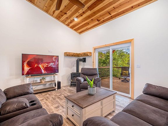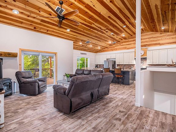 Built in 2019 this gorgeous home is located in Beaver Valley, backing to National Forest with terrific views and an easy walk to the East Verde River. You'll fall in love this home the moment you drive up to the fenced front yard complete with artificial turf and stone accents. The beautiful kitchen has raised panel cabinets, gas range, decorative concrete countertops, big island, breakfast bar, farmhouse sink and brick veneer backsplash. The main level has nice laminate flooring, knotty pine doors, and two bedrooms. One of the two bedrooms on the main floor is the owner's suite, which includes a big bathroom with a beautiful walk-in shower and separate tub. The spacious great room is perfect for entertaining and boasts a gas stove, recessed lighting, and vaulted T & G ceilings that provide an open feel. The great room opens to a covered deck overlooking the back of the property, which is surrounded with trees. Two additional bedrooms and a bathroom are located downstairs in the fully finished walk out basement. The basement also features a gas stove, stamped concrete floors, and plenty of space for guests. Also, Sellers have recently installed a new driveway and additional erosion control to the property.