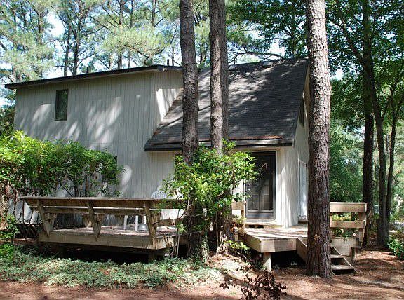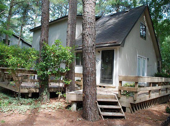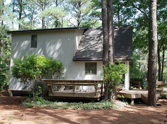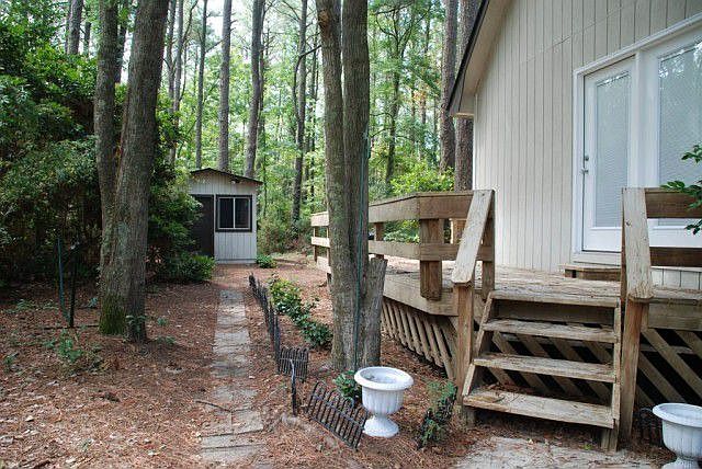 Kill Devil Hills - Outer Banks UNDER CONTRACT!!!! GREAT PRICE for Immaculate Home in desirable, quiet neighborhood!Little Cottage in the Woods! Used by owners as second home and maintained beautifully! Large, wooded lot that is bordered by acres of undeveloped woods! Back yard is a nature lovers delight! Large, wrap deck with built in seating. Open floor plan kitchen with eating area opening to family room...NEW french doors open to deck...large bathrooms, two bedrooms on ground level...up to large loft used as den and office and large master bedroom with large private bath. Big closets, lots of storage. All wood laminate floors thruout kitchen and family room. Carpet up steps and loft and bedroom in good shape! Window blinds! Skylights! Landscaped! Storage Shed! Great vacation home, primary residence! Move in condition! CLOSE to schools, shopping, easy access to KDH beaches. Bike path down the lane leads to Wright Brothers Monument. The Landing has a private boat dock, pier and picnic area plus a boat launch; direct sound access! Spend the day at the beach, come home to your shaded oasis, relax and refresh and stroll down the street to watch the sunset at soundfront pier! All at this great price!