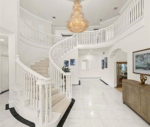 Welcome to this luxurious custom-built home located in one of Arcadia’s most prestigious neighborhoods. Sitting on a nearly 20,000 sq.ft. lot, this south-facing estate offers 7 en-suite bedrooms, 8.5 bathrooms, and approximately 6,654 sq.ft. of refined living space designed for both comfort and grandeur. Upon entry, you are greeted by a soaring high ceiling adorned with a magnificent crystal chandelier, setting the tone for the sophistication throughout. The spacious formal living room with a cozy fireplace flows seamlessly into the elegant formal dining room—perfect for entertaining and family gatherings. The open-concept kitchen is a chef’s dream, equipped with professional-grade appliances, a large center island, and a bright breakfast area. Adjacent to the kitchen is a warm and inviting family room featuring a wet bar and French doors that enhance natural light and indoor-outdoor flow. The main level includes 2 en-suite bedrooms, a library/home office, and a stylish powder room. Upstairs, you’ll find 5 additional en-suite bedrooms, including the expansive primary suite with its own fireplace and French doors leading to a large private balcony. Step outside into a true backyard oasis—complete with a resort-style swimming pool and spa, perfect for both entertaining and everyday relaxation. The lush landscaping provides tranquility and privacy, making this outdoor space a personal retreat. Additional highlights include excellent natural light throughout, high-end finishes, and a thoughtfully designed layout ideal for multigenerational living. Located within the top-rated Arcadia Unified School District and close to parks, dining, shopping, and entertainment. Don’t miss the opportunity to own this exceptional Arcadia estate—schedule your private tour today!