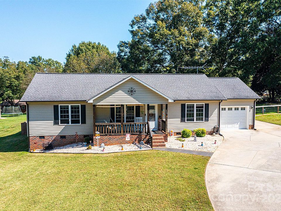 Lovely ranch home on Main St of small town of Maiden. 3 bedroom 2 full bath built in 2009 on .44 acre Fenced in backyard & storage building Split bedroom floor plan with open concept with walk in closets. Laundry room convenient between kitchen and 1 car garage. Kitchen has granite counter tops. Dining area has sliding door leading to large deck. Spacious. Close to Hwy 321 for convenience to Hickory & Lincolnton. Minutes to Rosenwald Park and schools.