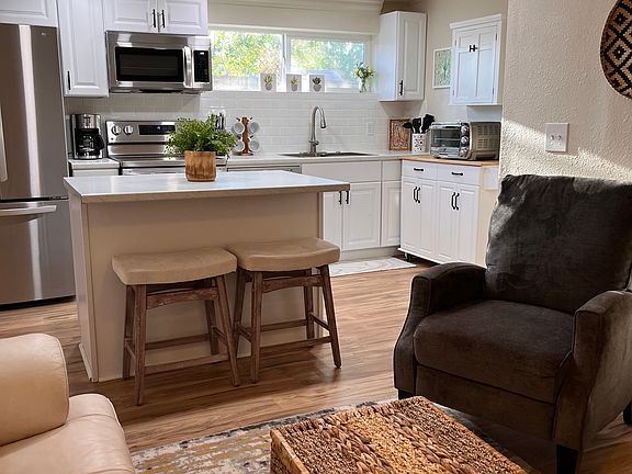 Newly renovated 2 bedroom, 2 bath apartment in the heart of Historic Winslow, very close to IHS Hospital. The apartment is shared by either two ttraveling professions at $775 each. Or, a couple traveling together at $1,550 per month, or an individual who would like the entire apartment to themselves. All new appliances, fully fenced yard, plently of parking. Washer and dryer in unit, on-demand water heater, each bedroom and the livingroom have a smart TV. All utilities including wifi are paid by the owner, tenants are responsible for any streaming services. No smoking or vaping allowed inside and outside the property.