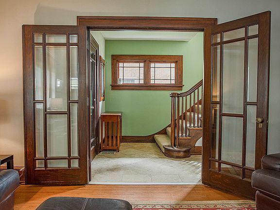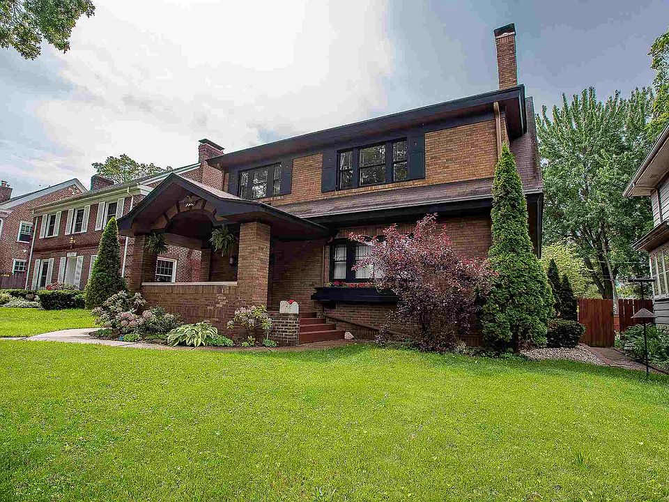 **Accepted offer** Will show for backup offers only. This all-brick 2-story home in the '07 has been well taken care of, including the renovated kitchen and full bath, while preserving the charm of the lead glass windows and beautiful woodwork. Walking up the steps, you'll notice the curved front door that leads to the double entry way (keeping cold weather out!). The indoor foyer is breathtaking from the stately staircase to the pristine tile flooring. French doors invite you to the large living room with a stately fireplace surrounded by built-ins. A second set of French doors left lead to the formal dining room with an amazing lead glass window and arc'd bay -- the perfect place for a serving station. The current owner of this home is a glass blower -- so don't miss the hand-blown light fixtures in this room and throughout the home. The updated kitchen has quartz counter tops (with a small butcher block area) new sink, newer appliances, a double oven and new subfloor underneath the on-point tile flooring. Upstairs, 3 large large bedrooms, built-in hallway storage and a brand new bathroom with double sinks, plenty of counter space, subway tile in the tub/shower and glass shower doors. The basement has an area to relax and watch television, a large laundry room and plenty of unfinished storage space. The sidewalks back to the front were replaced in 2017. The windows were deglazed, caulked and painted this past Spring, as well as the garage. Note the impressive perennial landscaping.