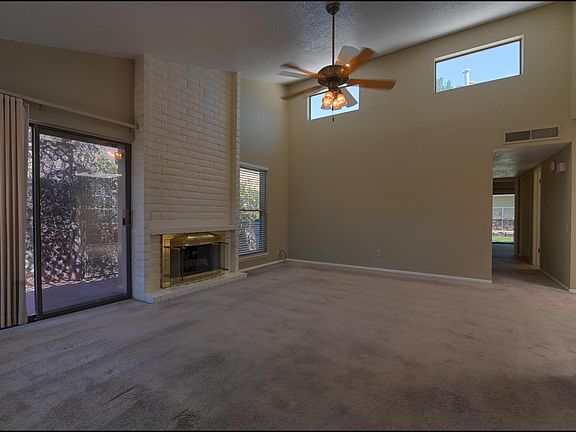 A MUST See! Quaint 3 bedroom, 2 bath home with living/dining combo and refrigerated air. The living area features a gas fireplace, built-in oak bookcase and pass-through into the kitchen, a sliding glass door to the private courtyard, with lots of room for patio furniture, plants, and entertaining. A skylight in the dining room lets in lots of bright light without letting the sunshine in to overheat the area. The kitchen offers light oak cabinets, stainless appliances, Corian counters and tile floors. Garage has been converted to a laundry room, workshop and storage area. The Master bedroom offers a walk-in closet, sliding glass door to the backyard, and a newly remodeled bathroom. Two additional bedrooms, and a second refinished bath complete the package. Double carport with lots of covered parking. The Cyclone & stone fence has mature bushes and vines for privacy. And offers a shed and storage area. Easy access to amenities with minimal cross traffic.
