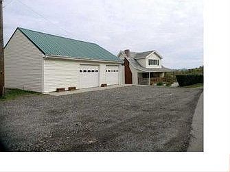 -New Detached Garage: Huge Storage Room Upstairs, Extended Room on Back for Lawn Tools and Wood for outside-Wood Stove That heats Home and Can be hooked to Garage. Home featuring, New side-walk Front porch/railing, Hard-Wood Floors, New Windows, Siding, Pantry, Kitchen open with Dinning-room, large living-room, nice entrance, Three bedrooms up stairs, Full basement, Located near State Park and Game lands.